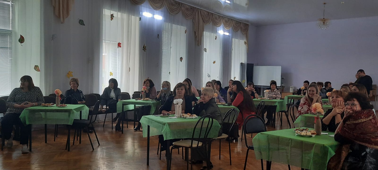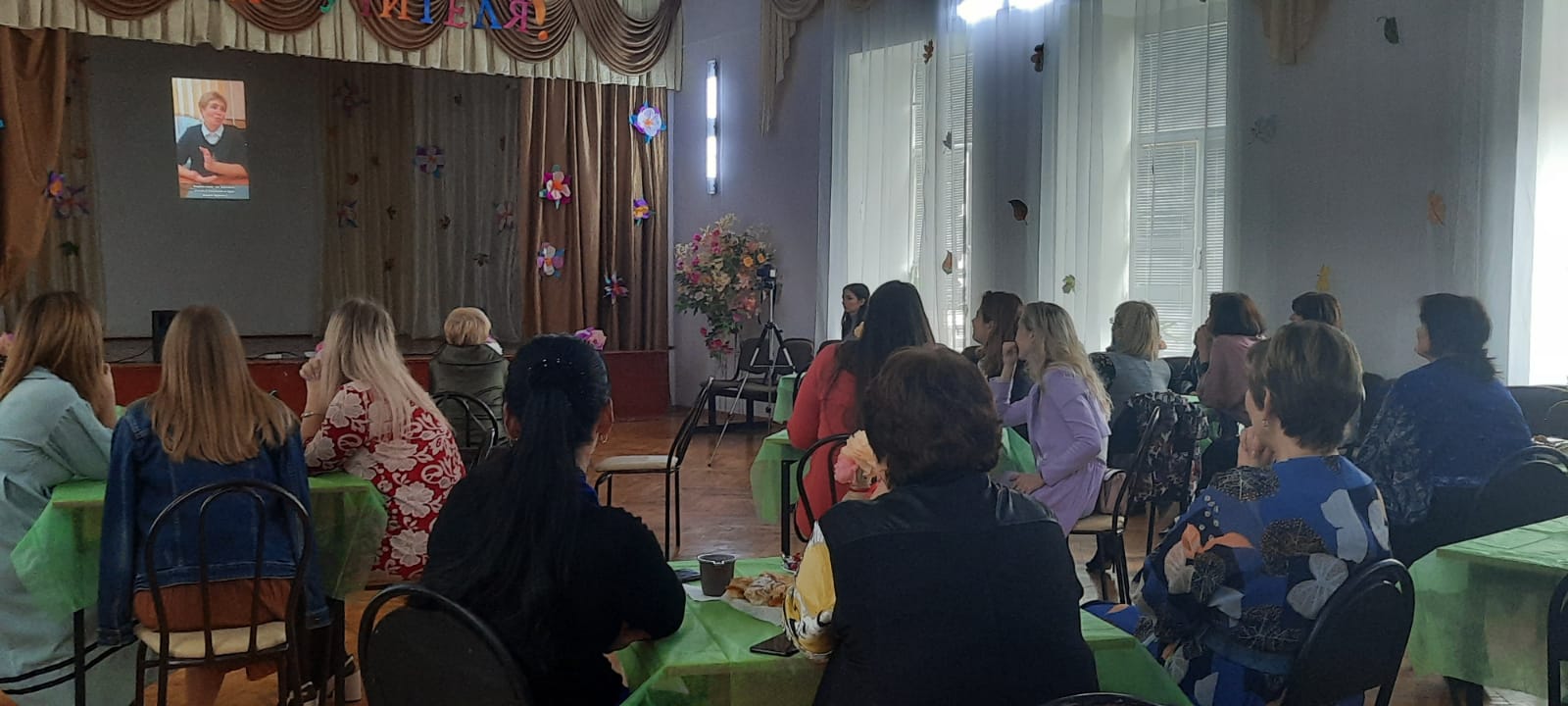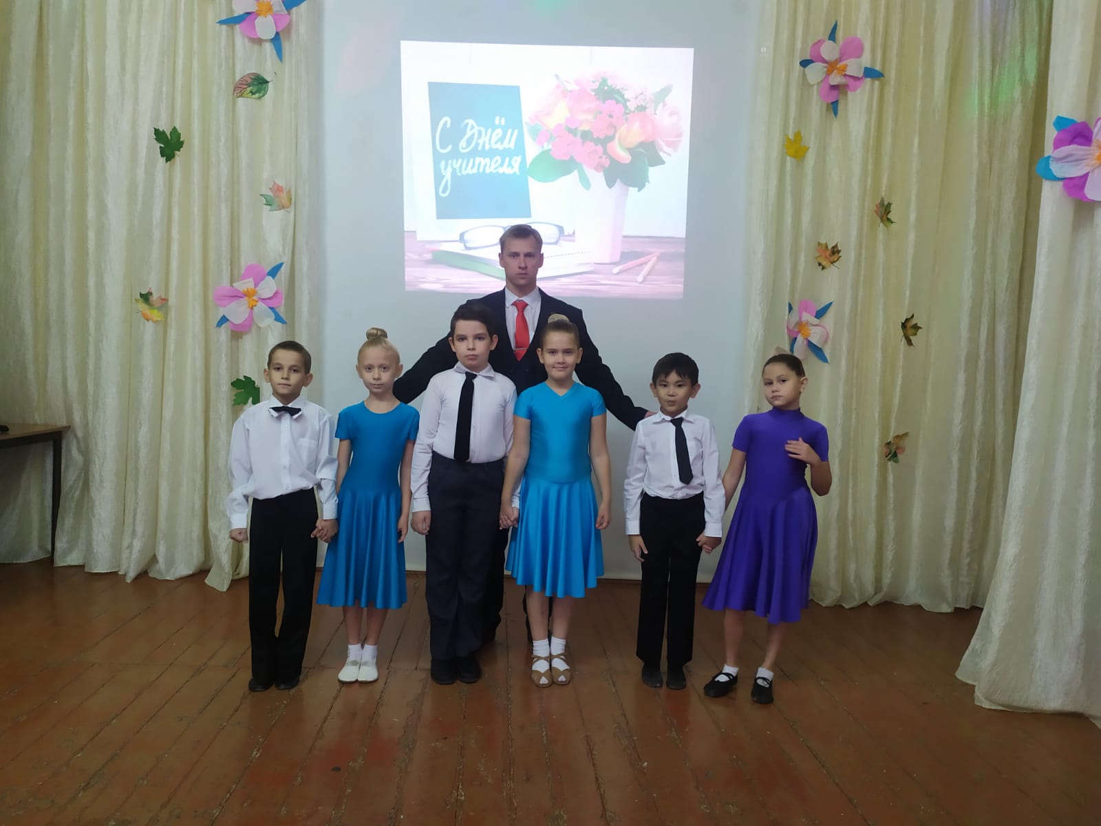 После всех мероприятий и поздравлений, в школе в актовом зале ученики со сцены рассказывают стихи, танцуют, играют на музыкальных инструментах и все это ради учителей.