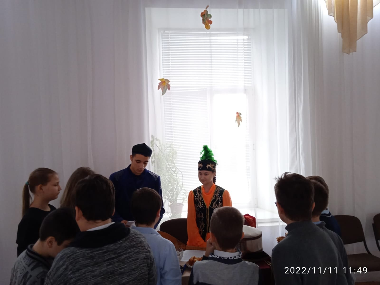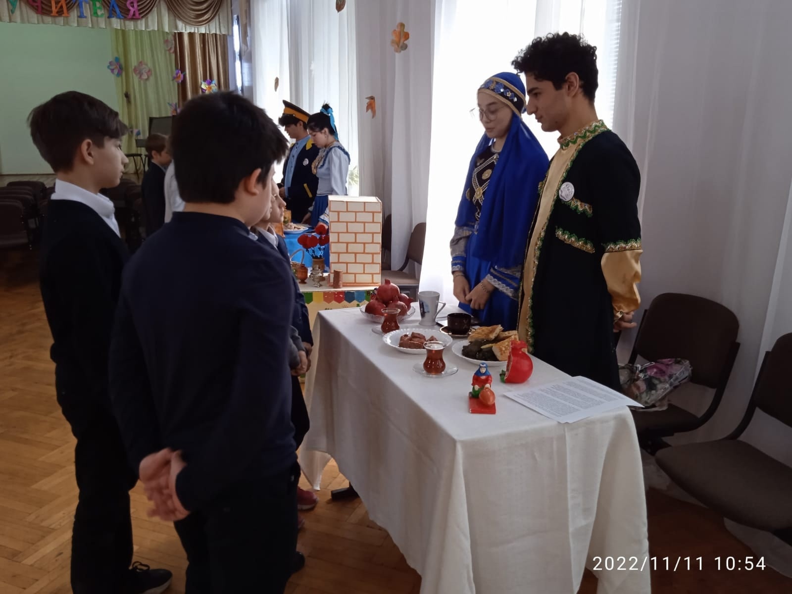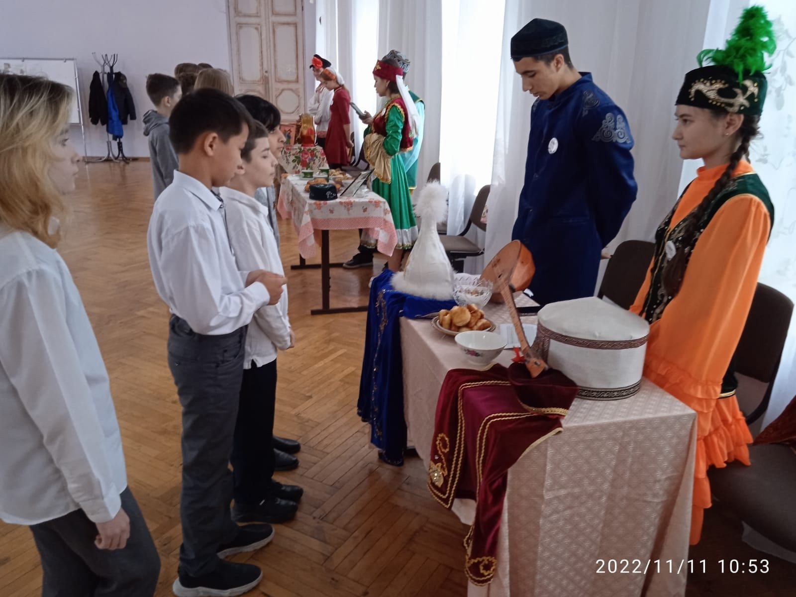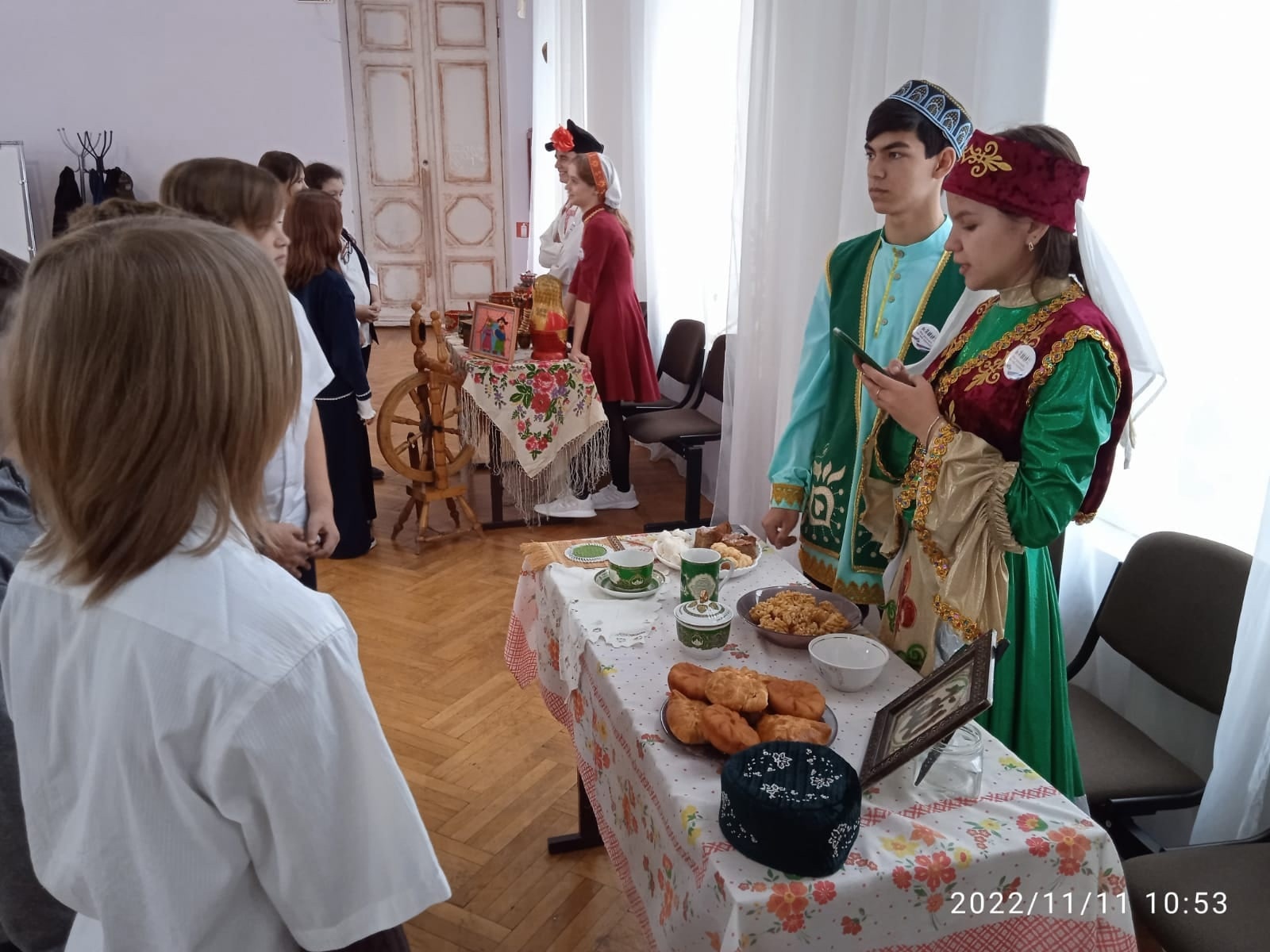 Сегодня ребята из 11 класса представили свои национальности. Они рассказали детям о костюмах, традициях, обрядах и возникновении праздника. Рассказы об истории возникновения праздника позволяют ребятам глубже проникнуть в то, что произошло на Руси более 400 лет назад, и понять, как единение помогло русскому народу справиться с захватчиками, о подвиге Кузьмы Минина и Дмитрия Пожарского.