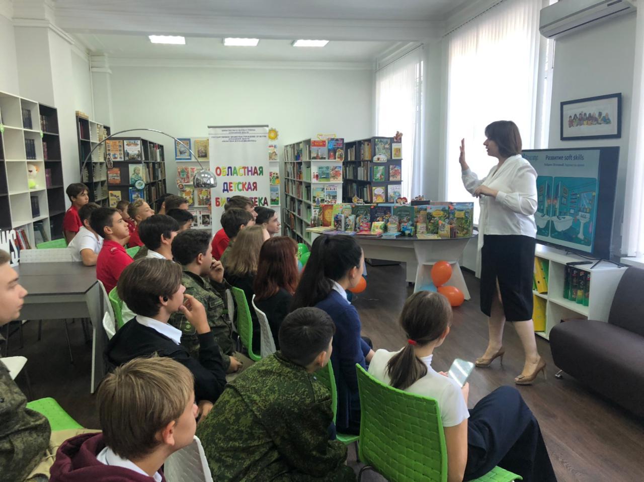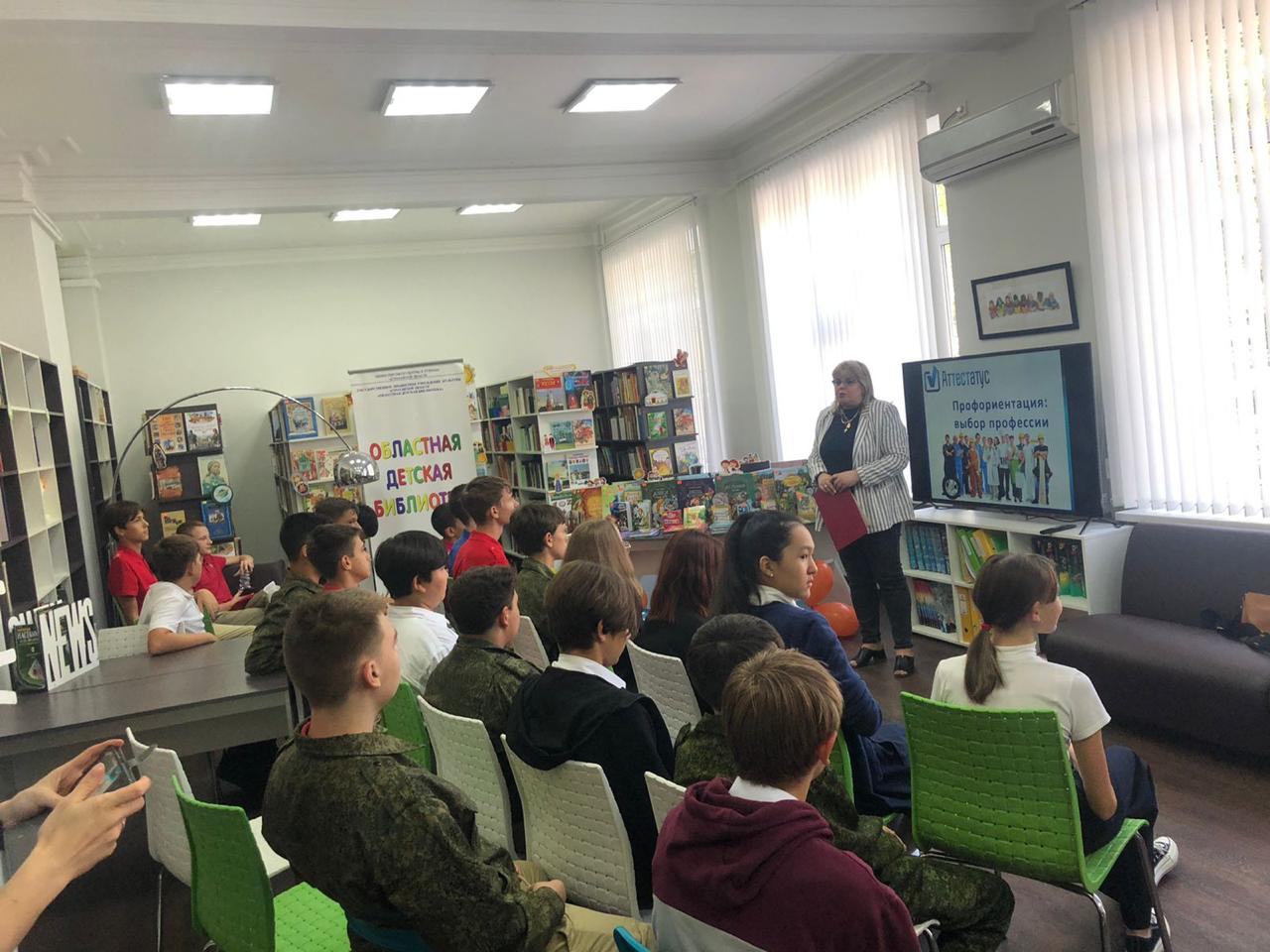 Девятого сентября учащиеся 8 «В» класса посетили Областную детскую библиотеку. Юнармейцы приняли участие в профориентационном мероприятии от «Аттестатус».