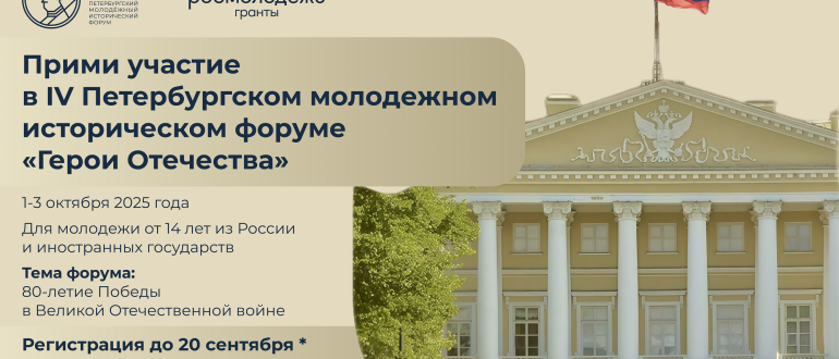 С 1 по 3 октября 2025 года Санкт-Петербург станет центром притяжения для молодых историков и патриотов. В северной столице пройдет IV Петербургский молодежный исторический форум «Герои Отечества». Мероприятие…