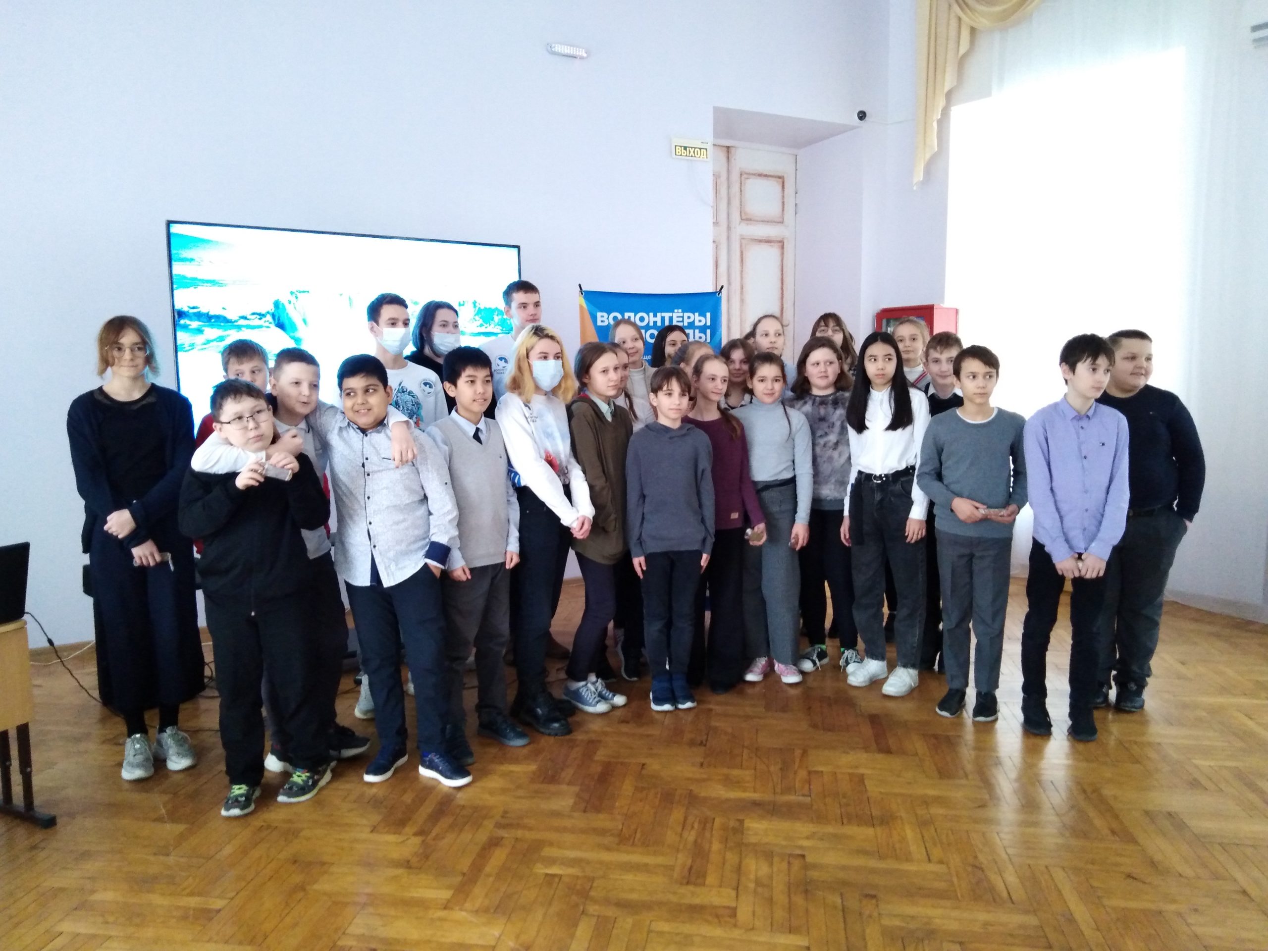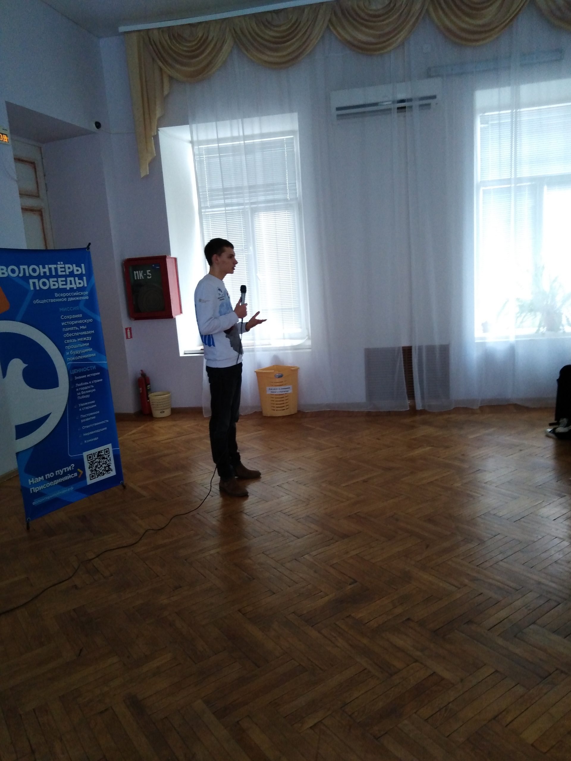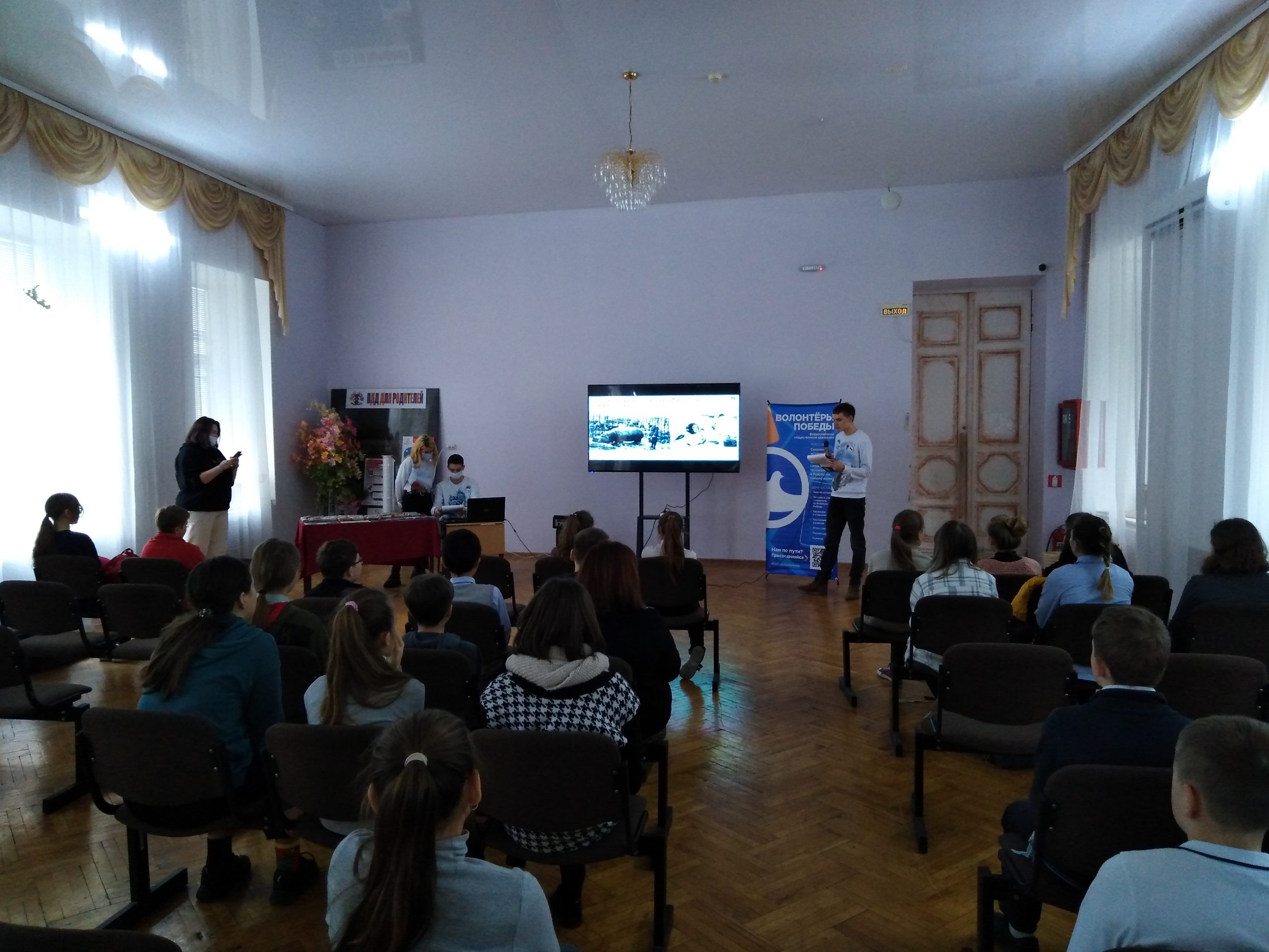 Волонтёры победы общались с учащимися пятых классов.