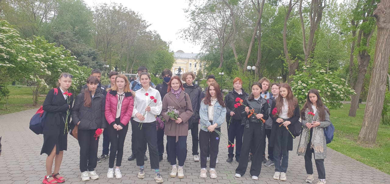 7 «В» и 9 «В» классы (классный руководитель Прокофьева Маргарита Михайловна) 6 мая 2022 года возложили цветы к Вечному огню и чувством глубокого уважения почтили память погибших в Великой Отечественной войне минутой молчания.