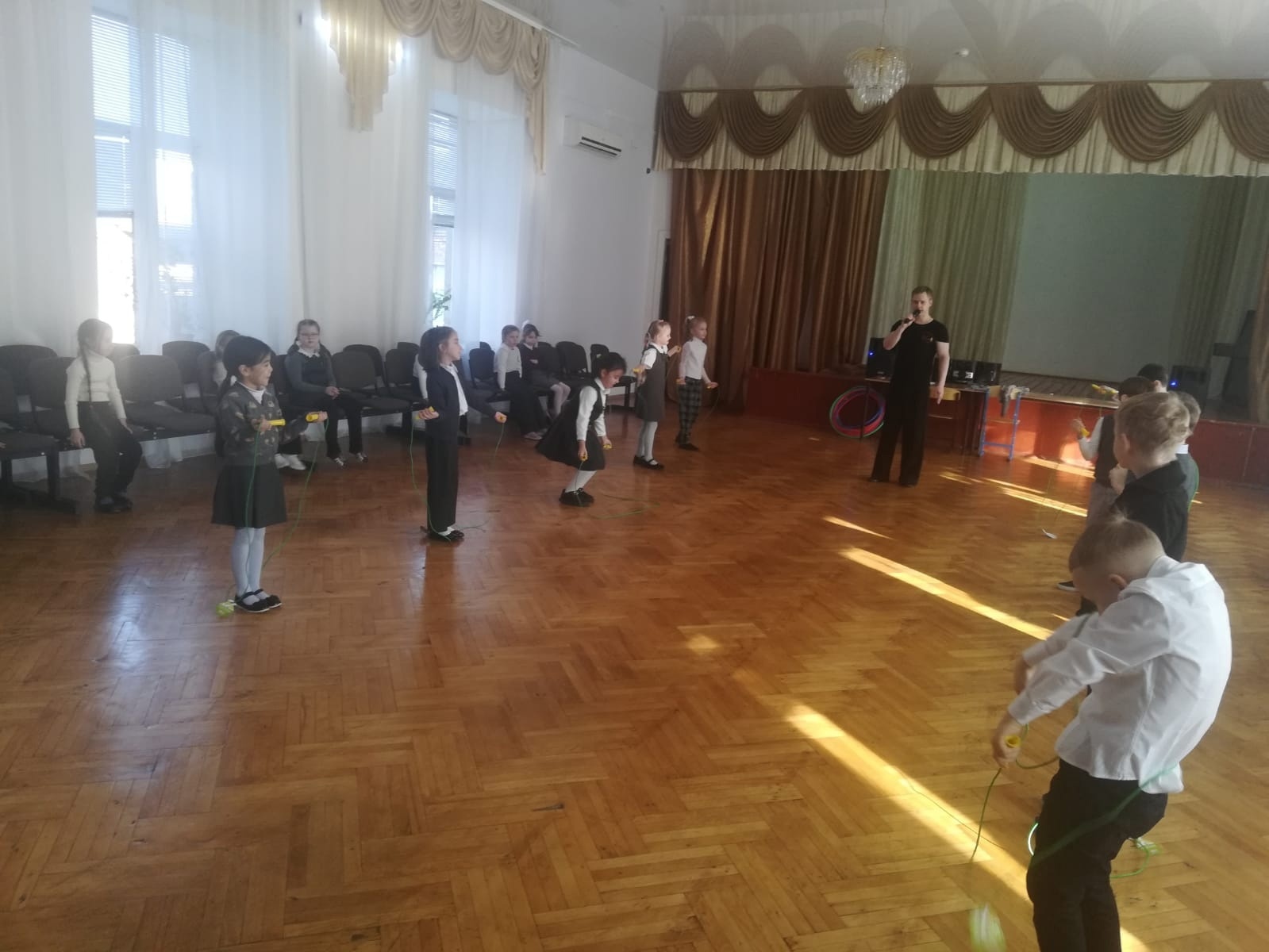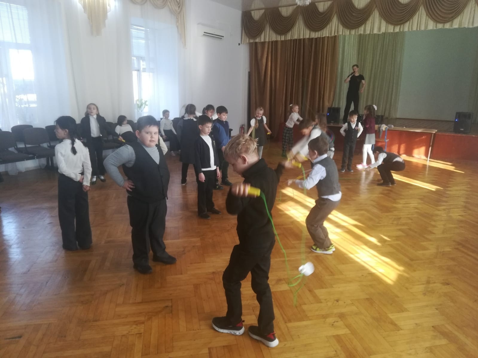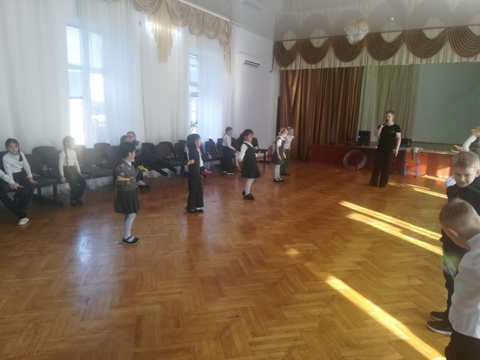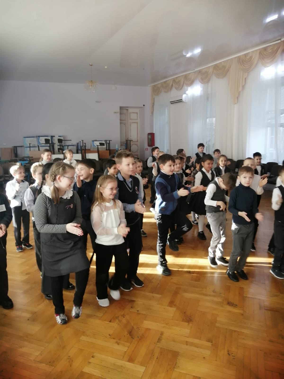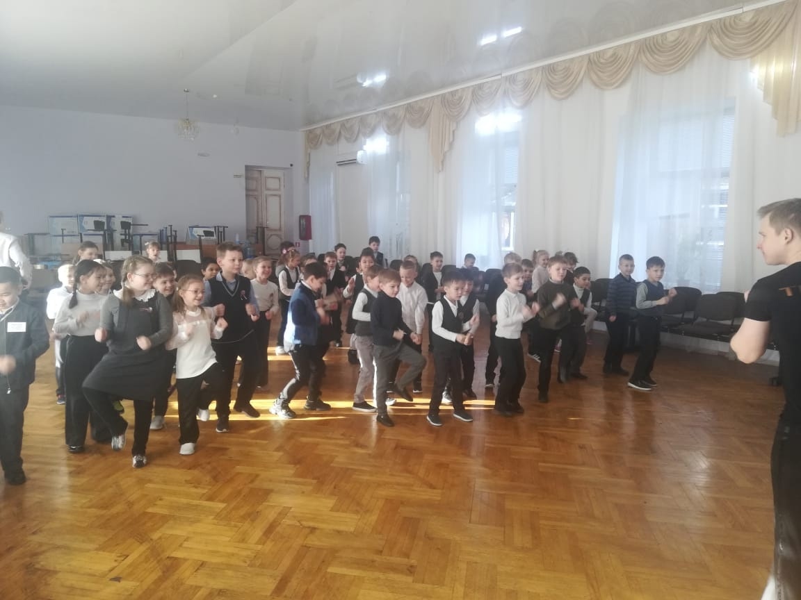 Педагог-хореограф Снегов Сергей Александрович с удовольствием провёл занятие для первоклассников. Во время проведения динамической паузы использовались: