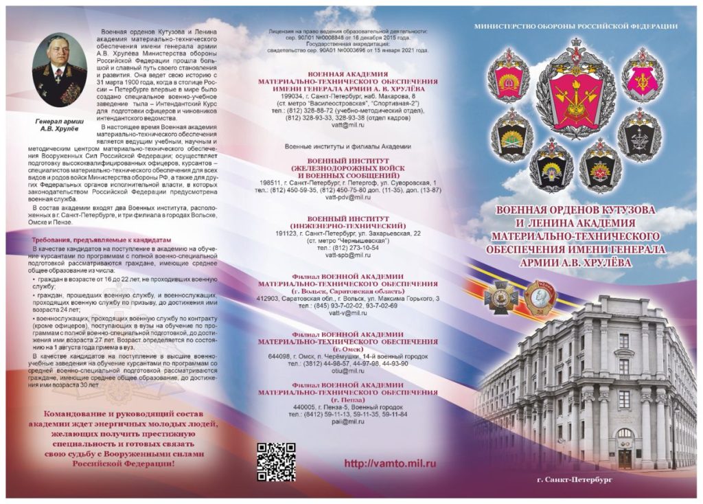 Информация о Военной академии материально-технического обеспечения имени генерала армии А.В. Хрулёва. 1 Ноя 2025Рубрика: Ученикам