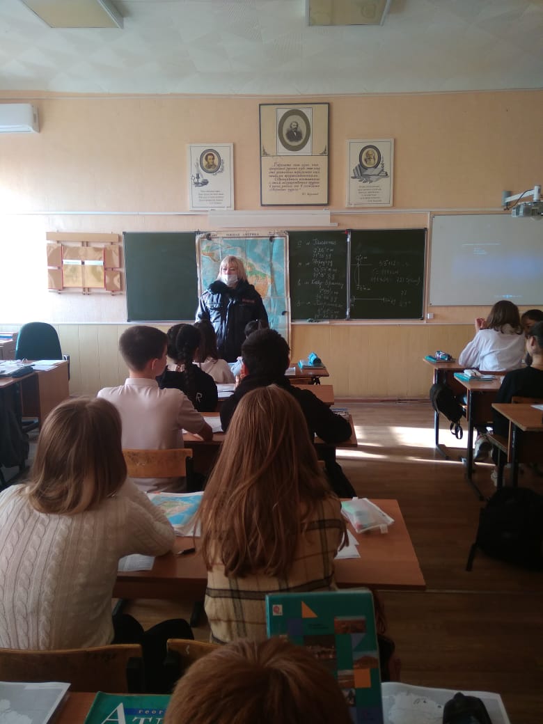 Инспектор ОДН УМВД России по г. Астрахани провела беседу с учащимися 7-8 классов на темы: «Интернет-безопасность»; » Уголовная и административная ответственность несовершеннолетних»