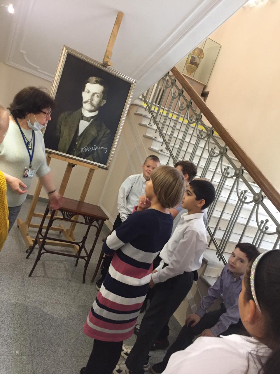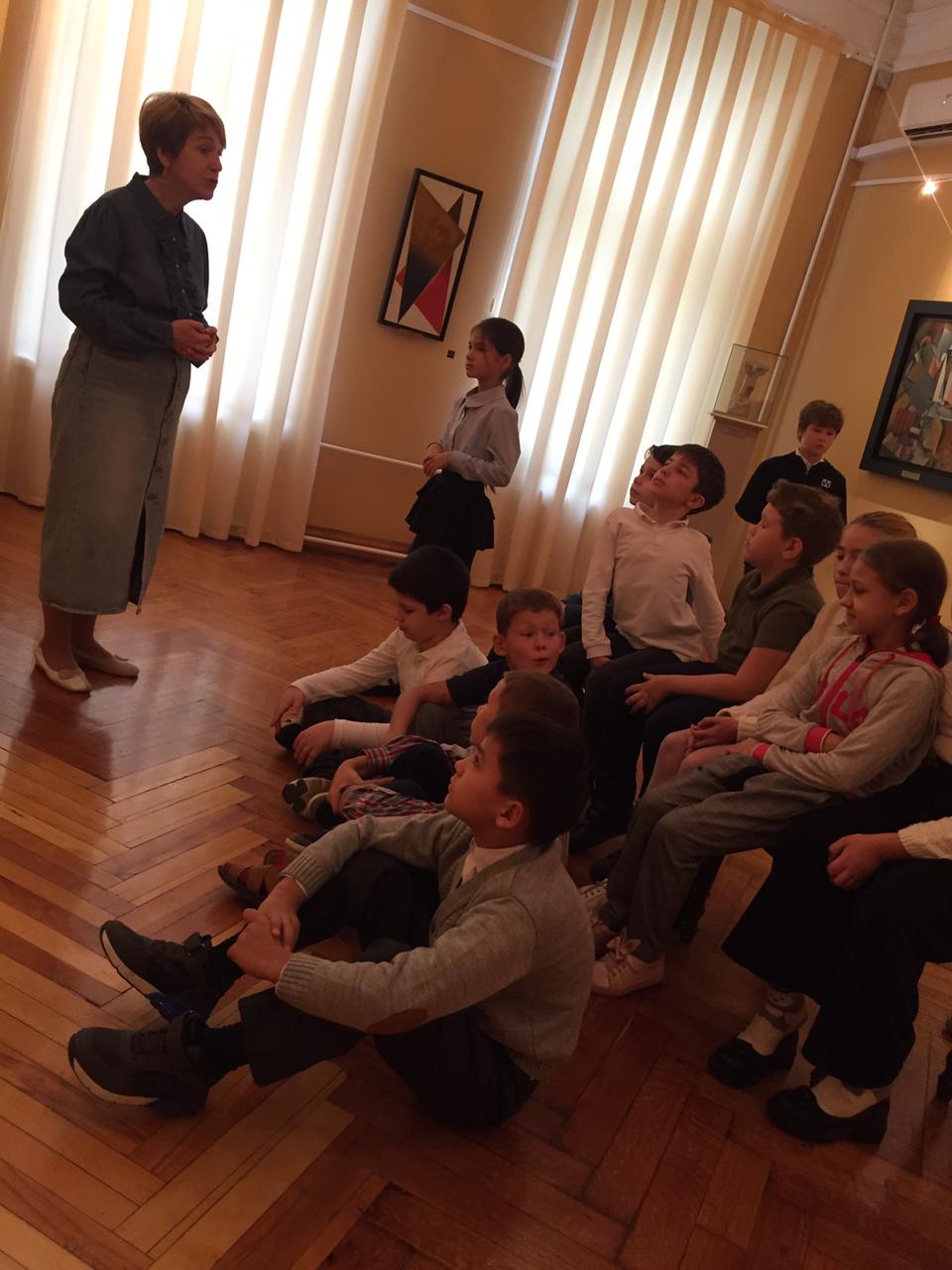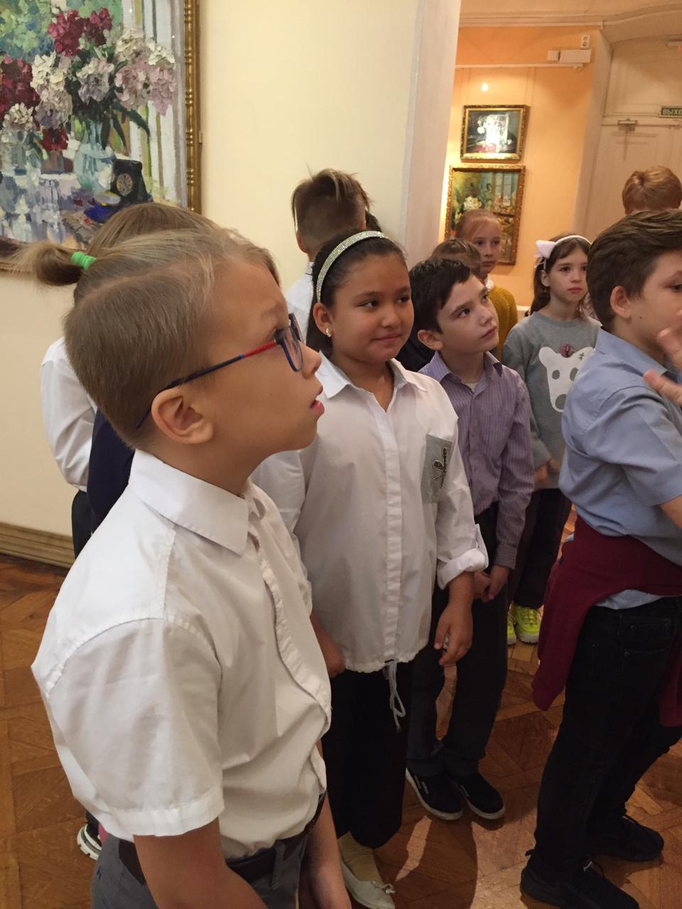 Гостями выставки стали учащиеся 4«В» класса под руководством Тарковой Е.В. Ученикам предложили познакомиться с разными видами и жанрами изобразительного искусства 19 века. Ребятам рассказали о каждой картине, ее образах, деталях, скрытых посланиях и смыслах.