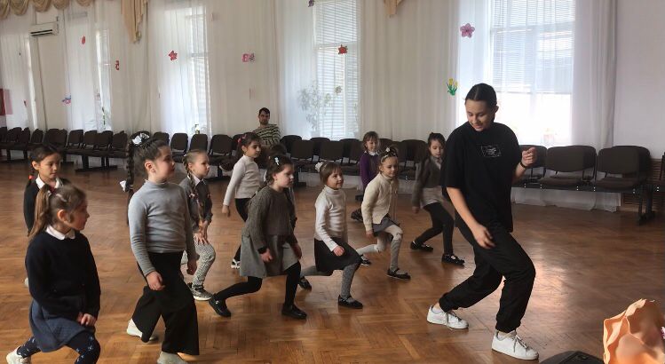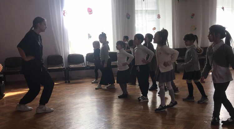 Тренером выступила ученица 9 «А» класса Курашова Ева, которая дала основную базу танца детям первого класса. Мастер класс шёл на протяжении часа.