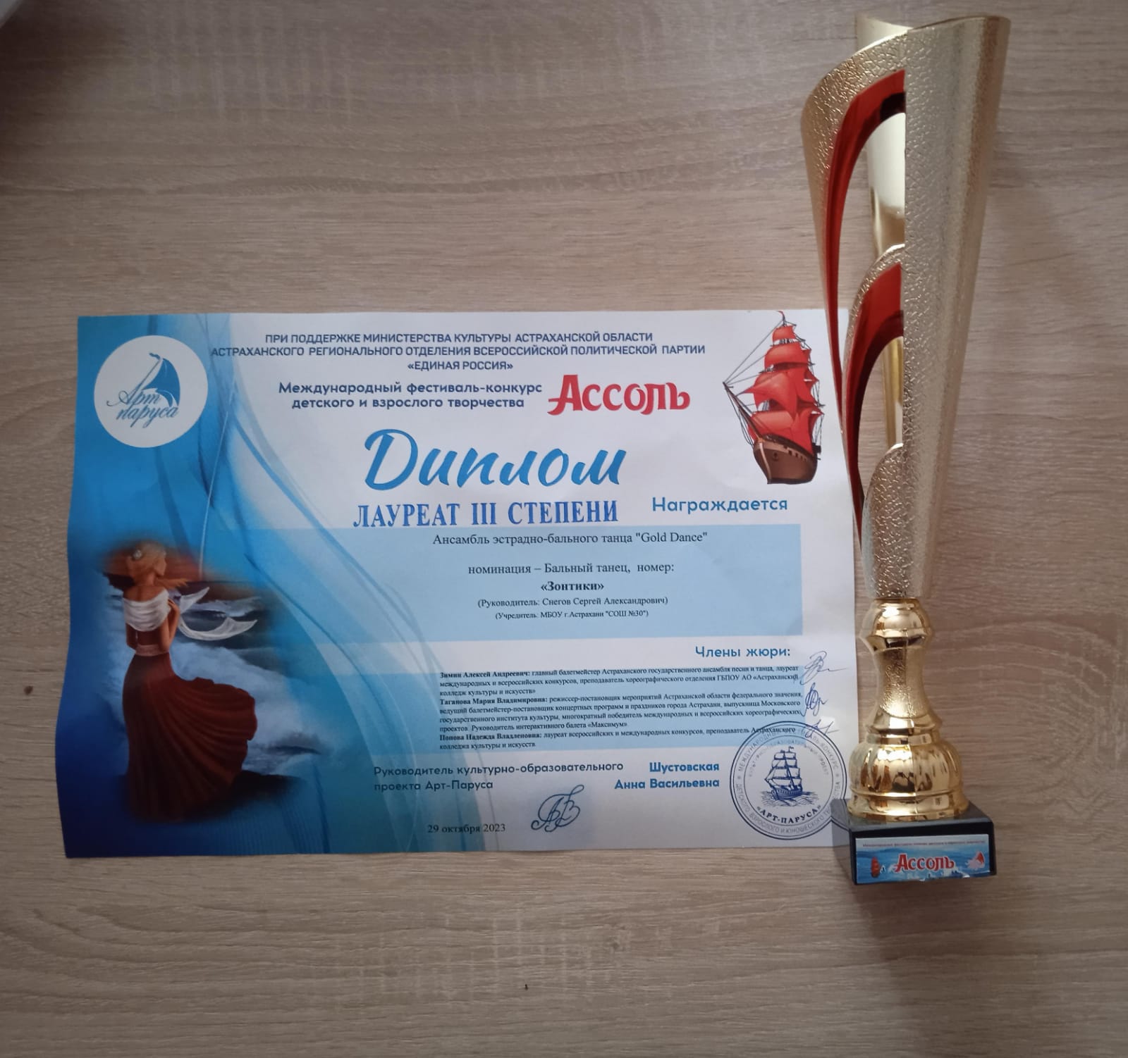 29 октября в «Доме творчества Успех» прошёл Международный фестиваль-конкурс детского и взрослого творчества «Ассоль», в котором приняли участие ребята из ансамбля эстрадно-бального танца «Gold dance». По итогам конкурса, ребята получили лауреат 3 степени.