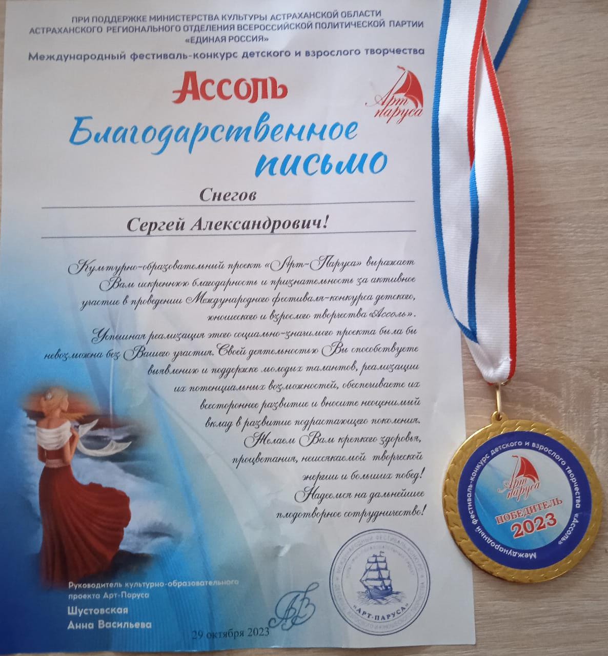 Международный фестиваль-конкурс «Ассоль» проходил при поддержке Министерства культуры и Астраханской области, а также при поддержке Астраханского регионального отделения политической партии «ЕДИНАЯ РОССИЯ». Помимо дипломов и кубков победителям, каждому участнику была вручена медаль, а также состоялся розыгрыш ценных призов.