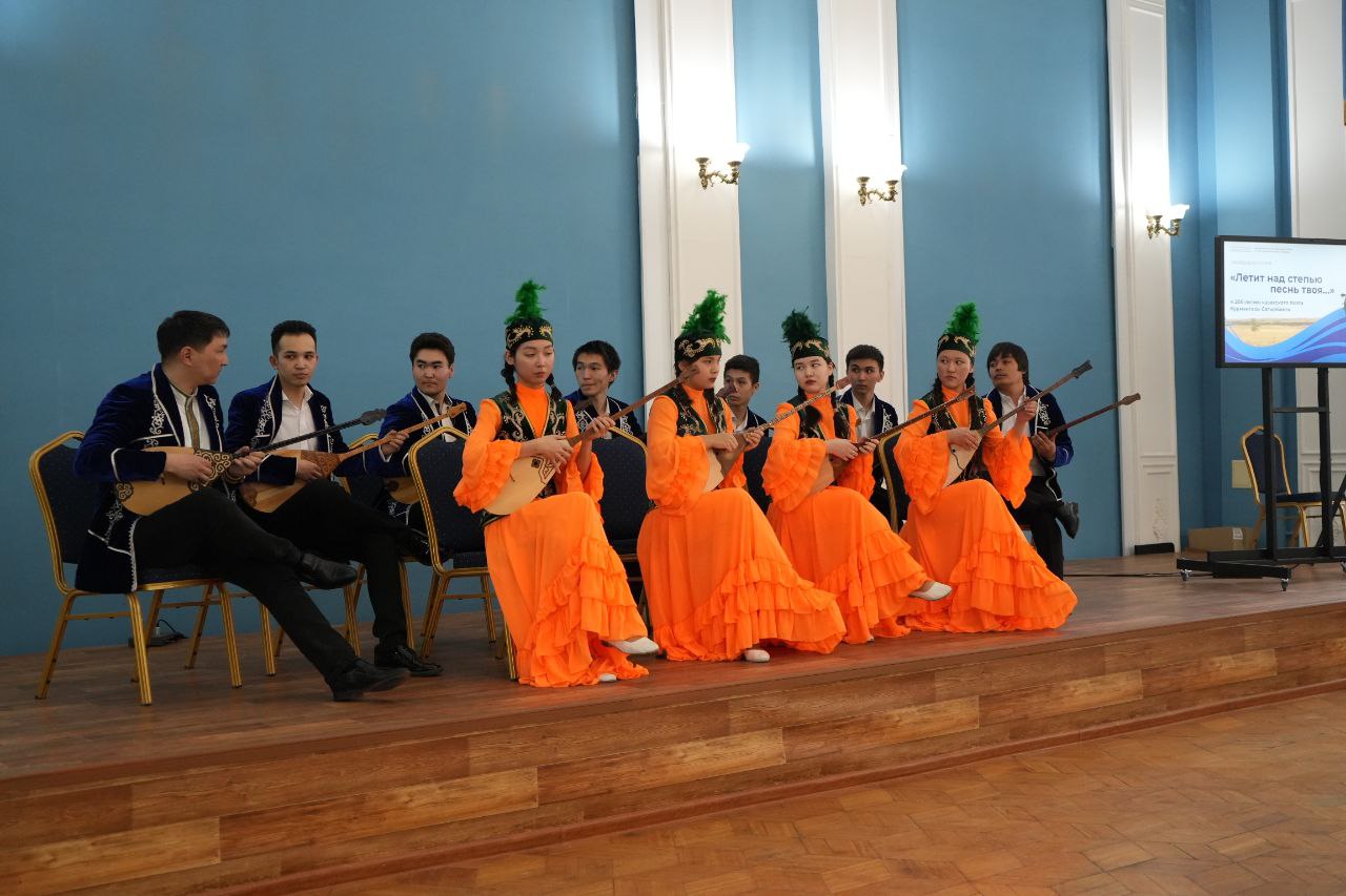 В исполнении лучших астраханских музыкальных коллективов-домбристов звучали самые известные произведения великого кюйши и его ученицы Дины Нурпеисовой.