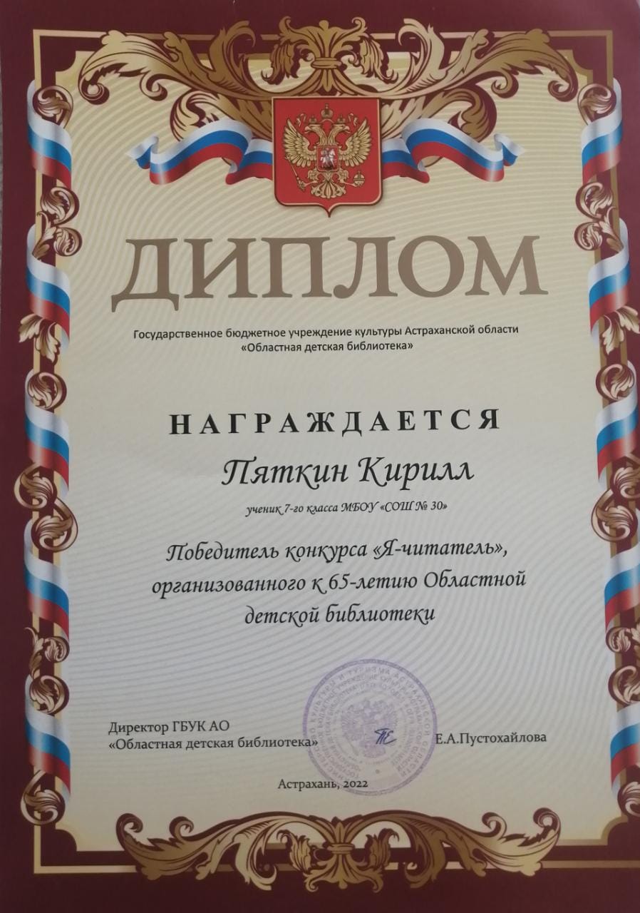 9.09 областная детская библиотека подвела итоги конкурса лучший читатель, победителем стал учащийся нашей школы Пяткин Кирилл.