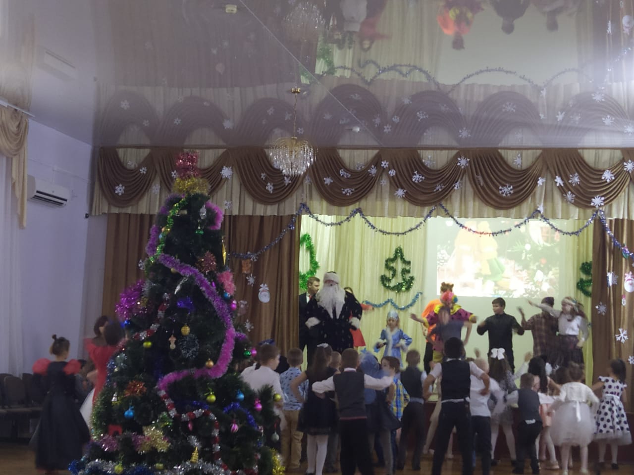 Проведены новогодние елки отдельно по классам. Дети пели песни, танцевали, активно участвовали в конкурсах. Все получили подарки от Деда Мороза и Снегурочки. Было всем весело и радостно. У всех было отличное настроение.