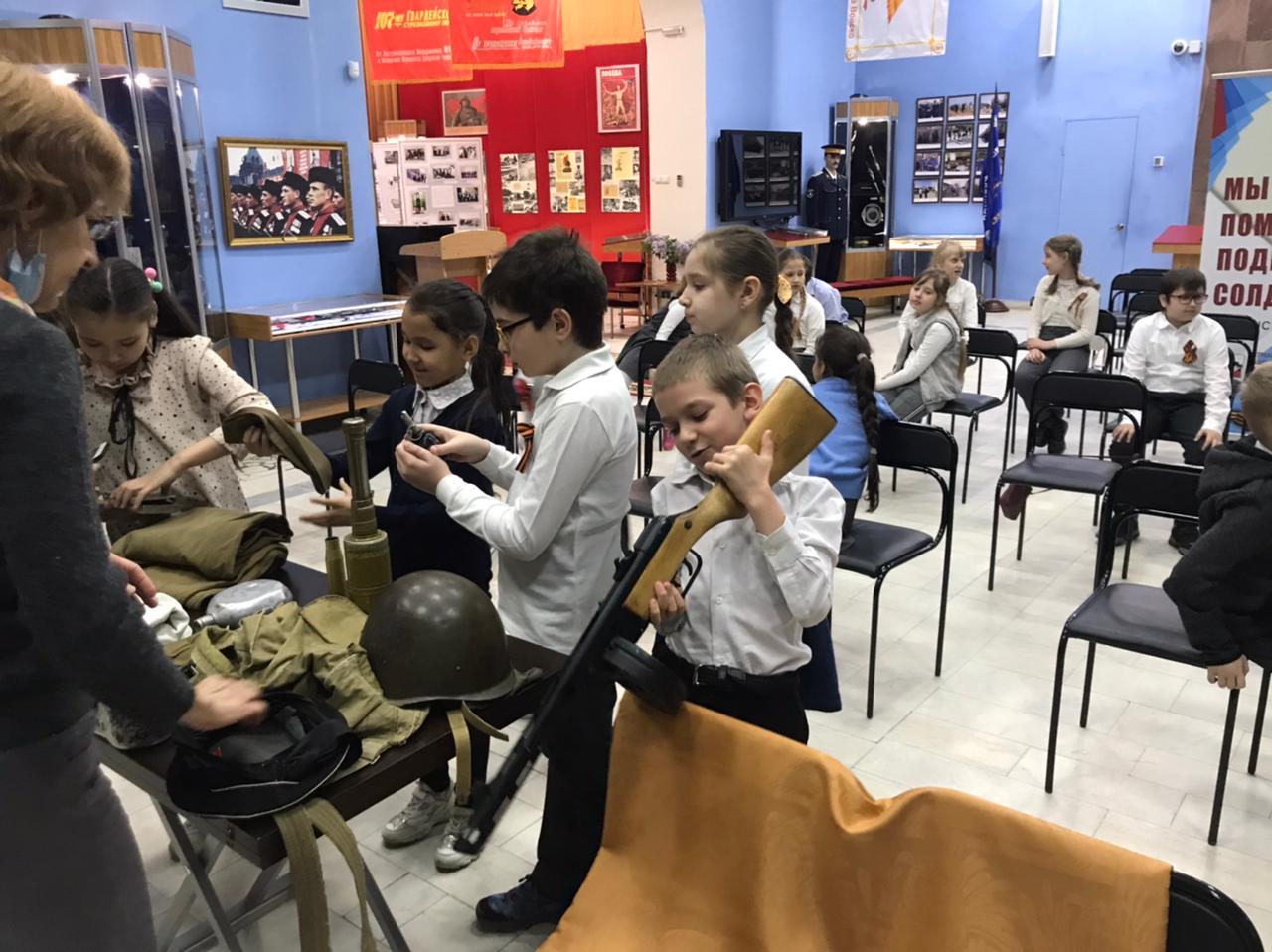 Вещевой мешок солдата 27 Апр 2021Рубрика: Ученикам Ученики 3«А» класса на экскурсии в Музее Боевой славы. Мероприятие «Вещевой мешок солдата».