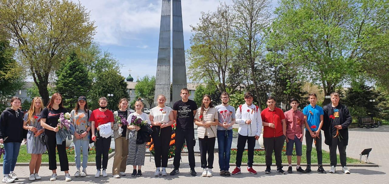 4 мая учащиеся 9 «В», 8 «А» и 6 «В» классов вместе с классным руководителем Прокофьевой М.М. возложили цветы к памятнику героям Великой Отечественной войны.